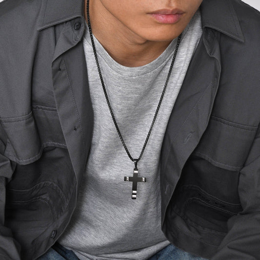 Collier avec pendentif en forme de croix en acier inoxydable noir