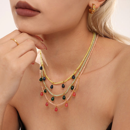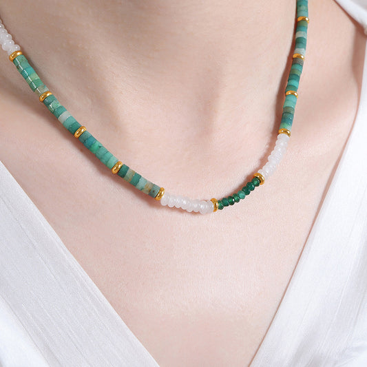 Collier avec pendentif en pierre naturelle et perles en acier inoxydable