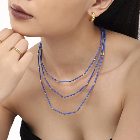 Collier de perles en acier inoxydable avec lapis-lazuli naturel