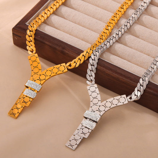 Collier pendentif en forme de Y en acier inoxydable et oxyde de zirconium