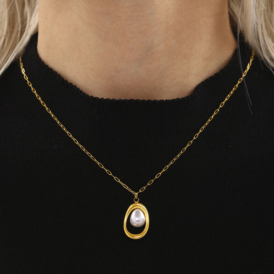 Collier en acier inoxydable avec chaîne et perles d'imitation