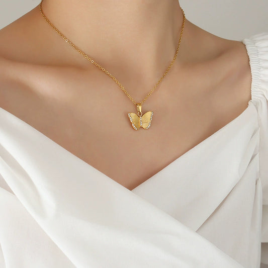 Collier avec pendentif en acier inoxydable et zircone cubique incrustée de boules