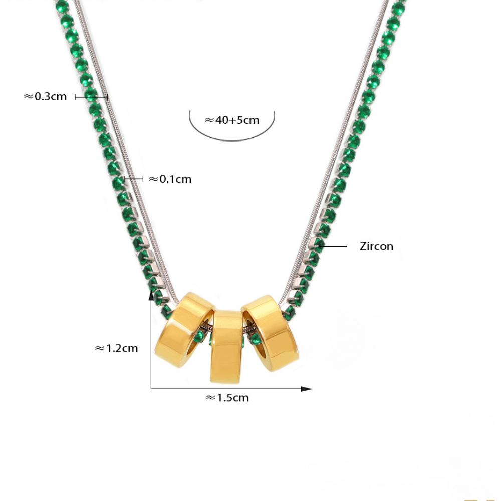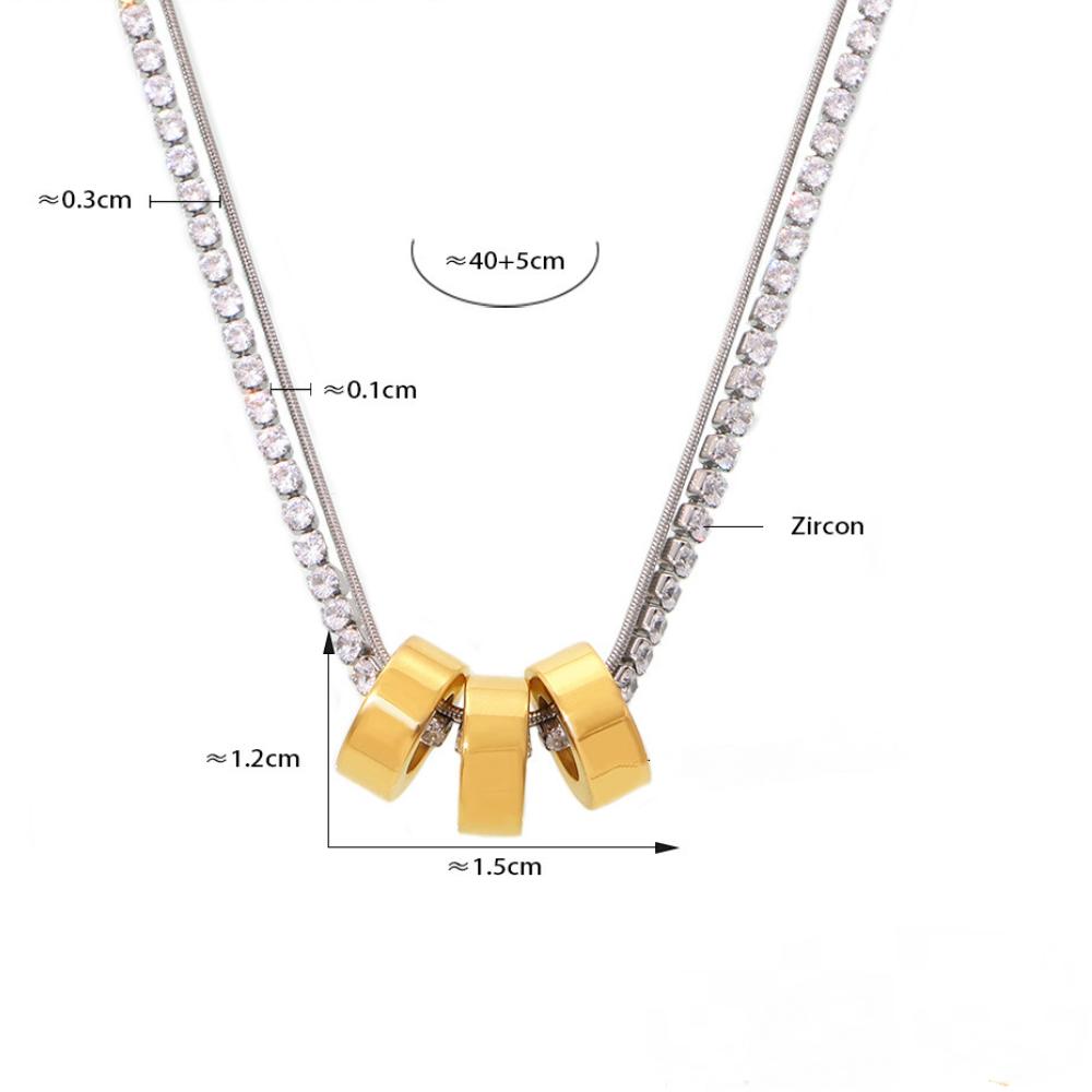 3mm Cubic Zirconia Chain 3 Rings Pendant Necklace