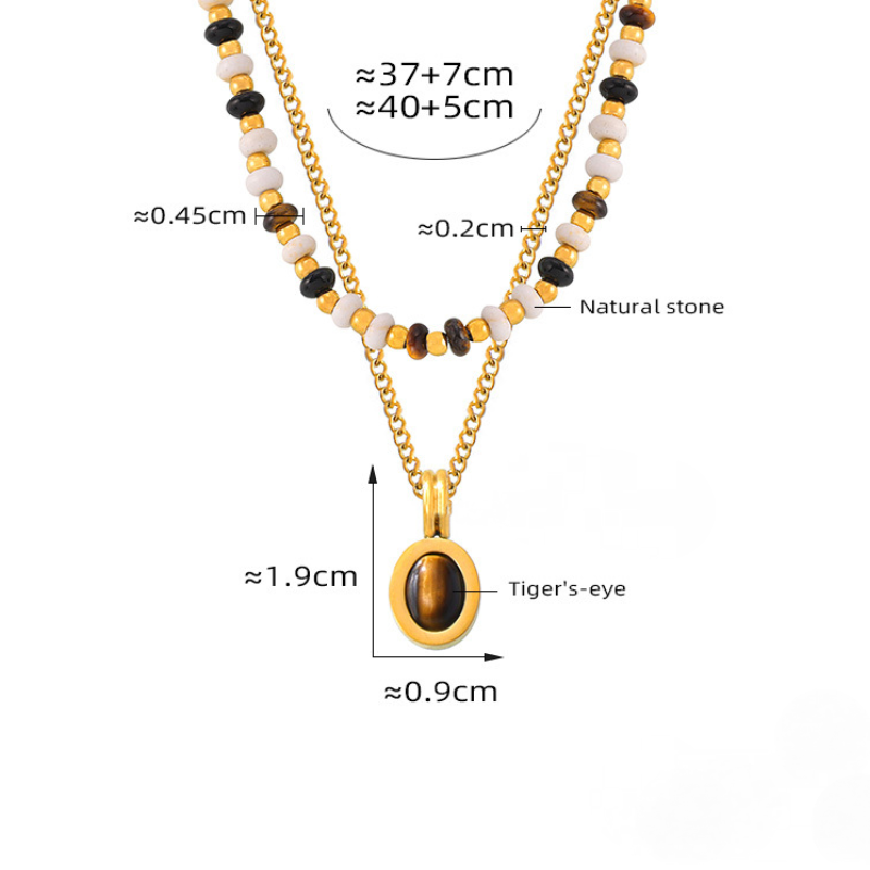 Beaded Necklace & Tiger Eye Stone Pendant Double Layer Stacking Necklace