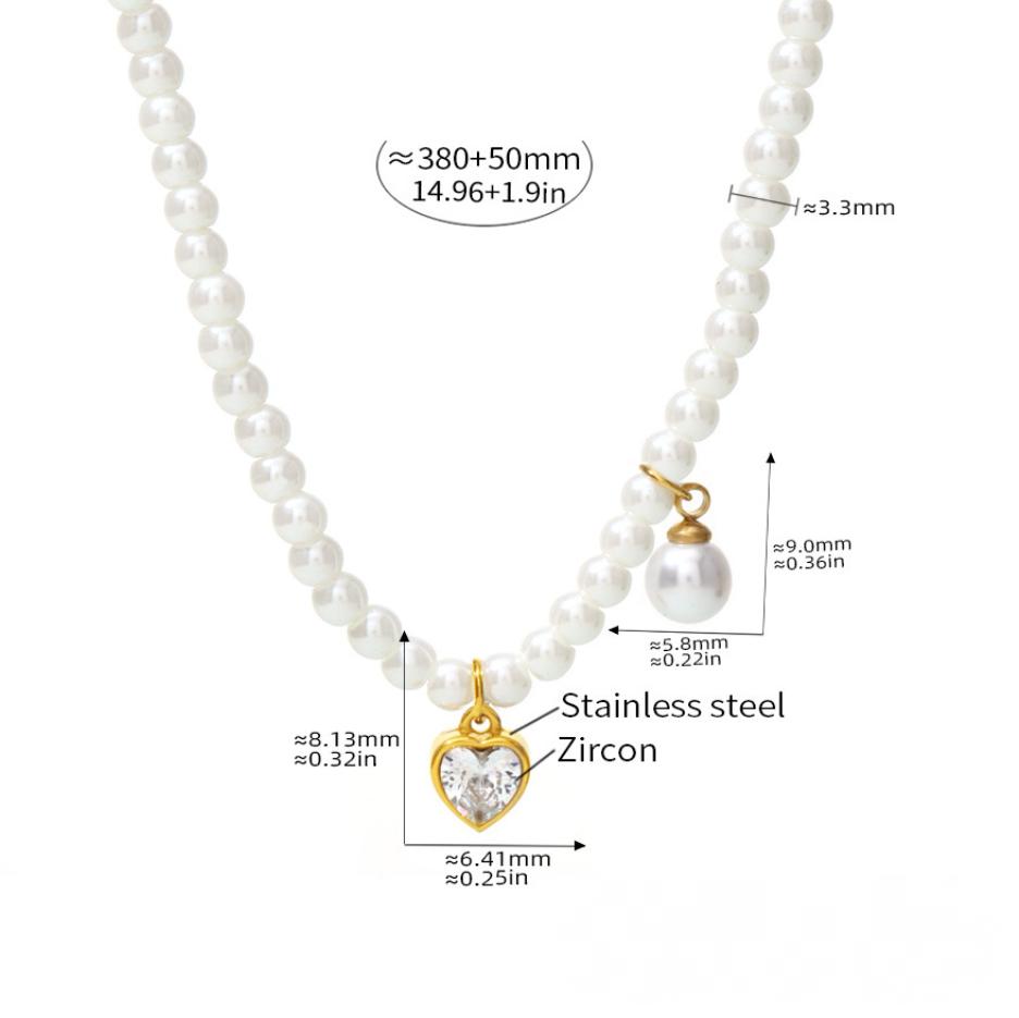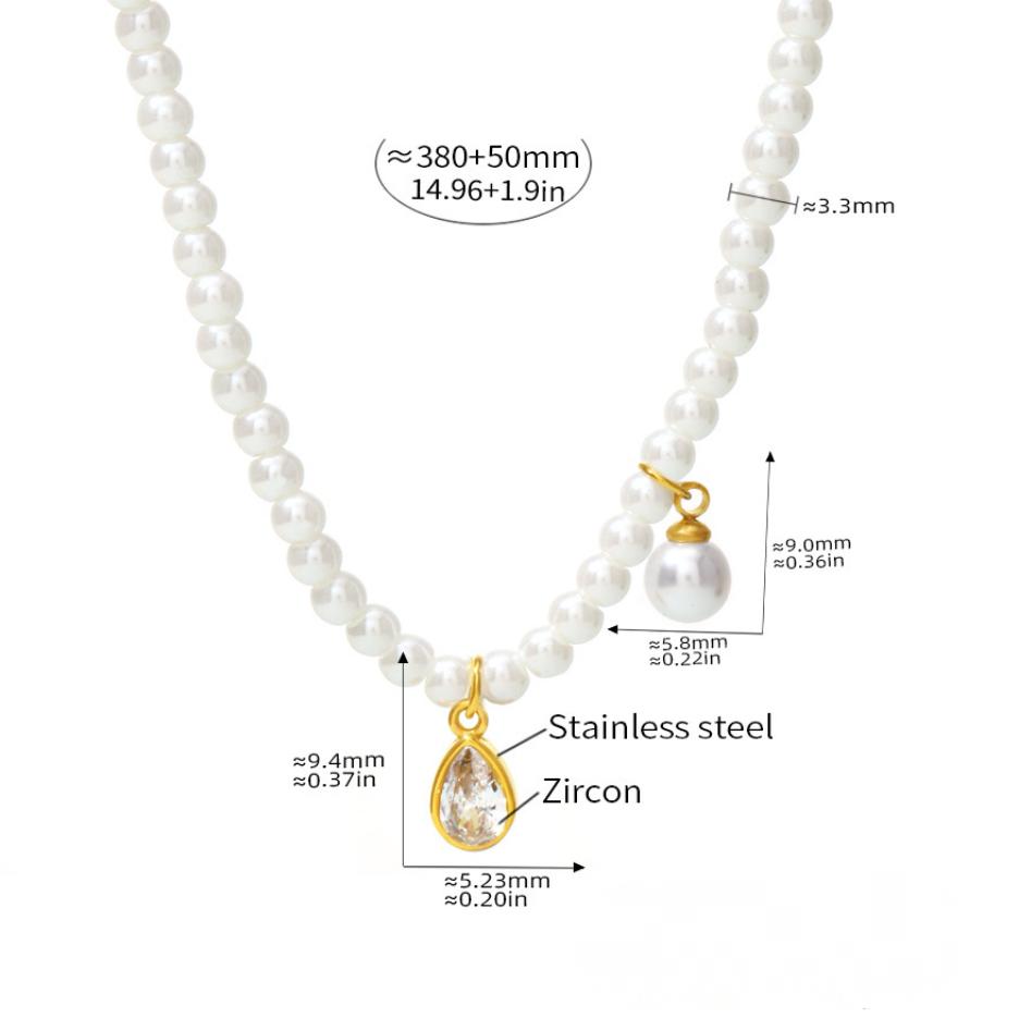 Cubic Zirconia Pendant Imitation Pearl Chain Necklace