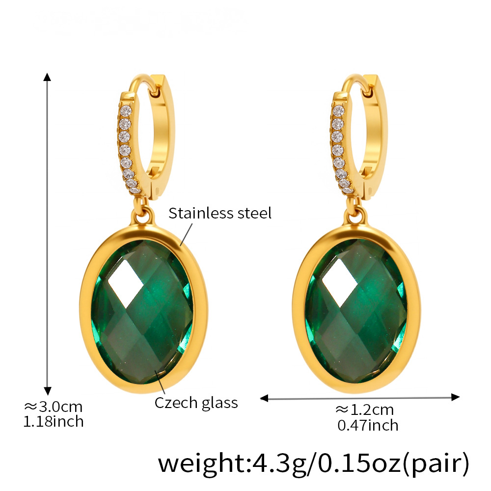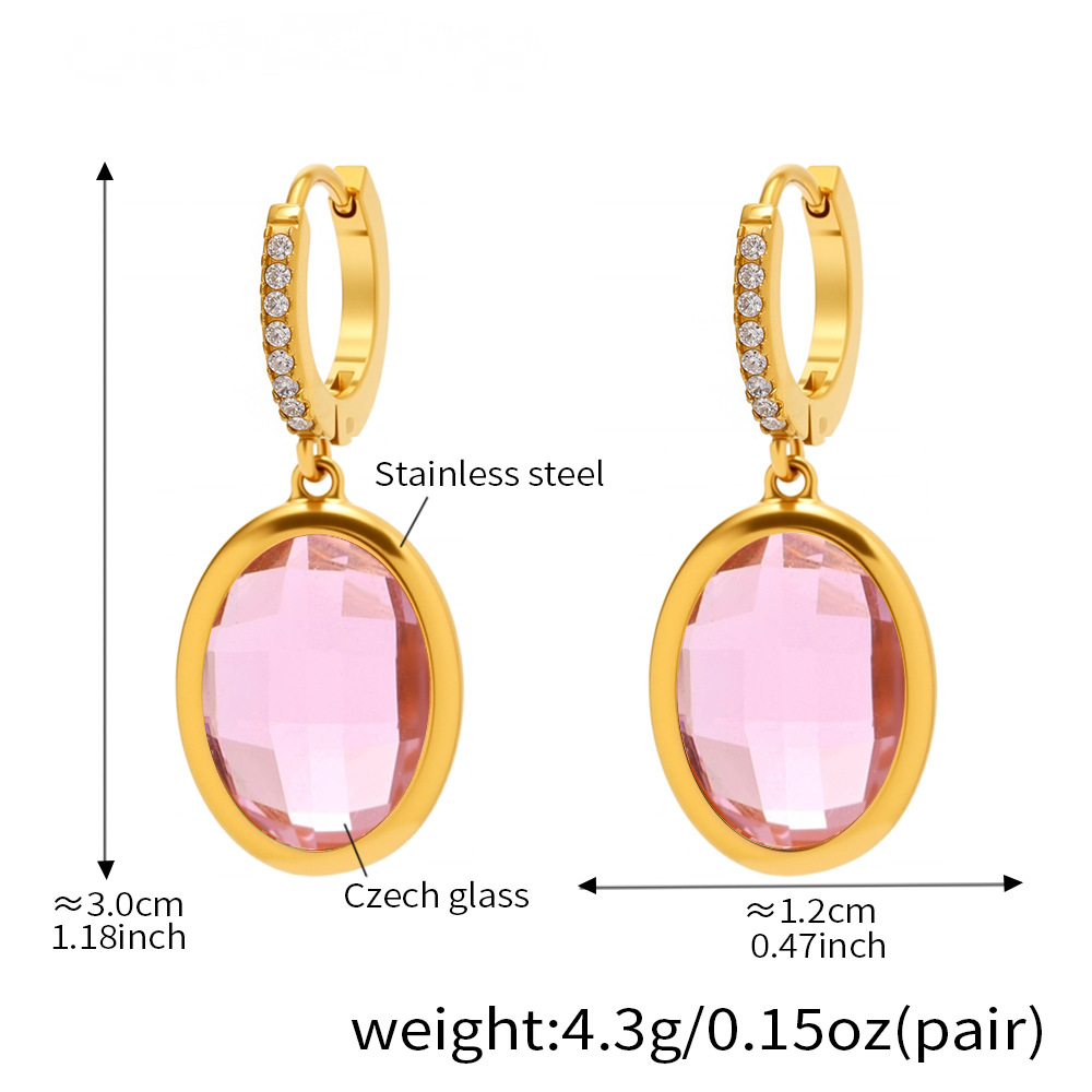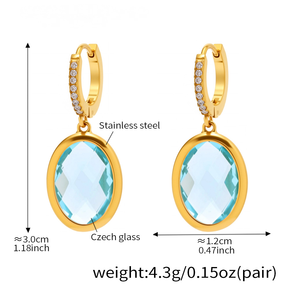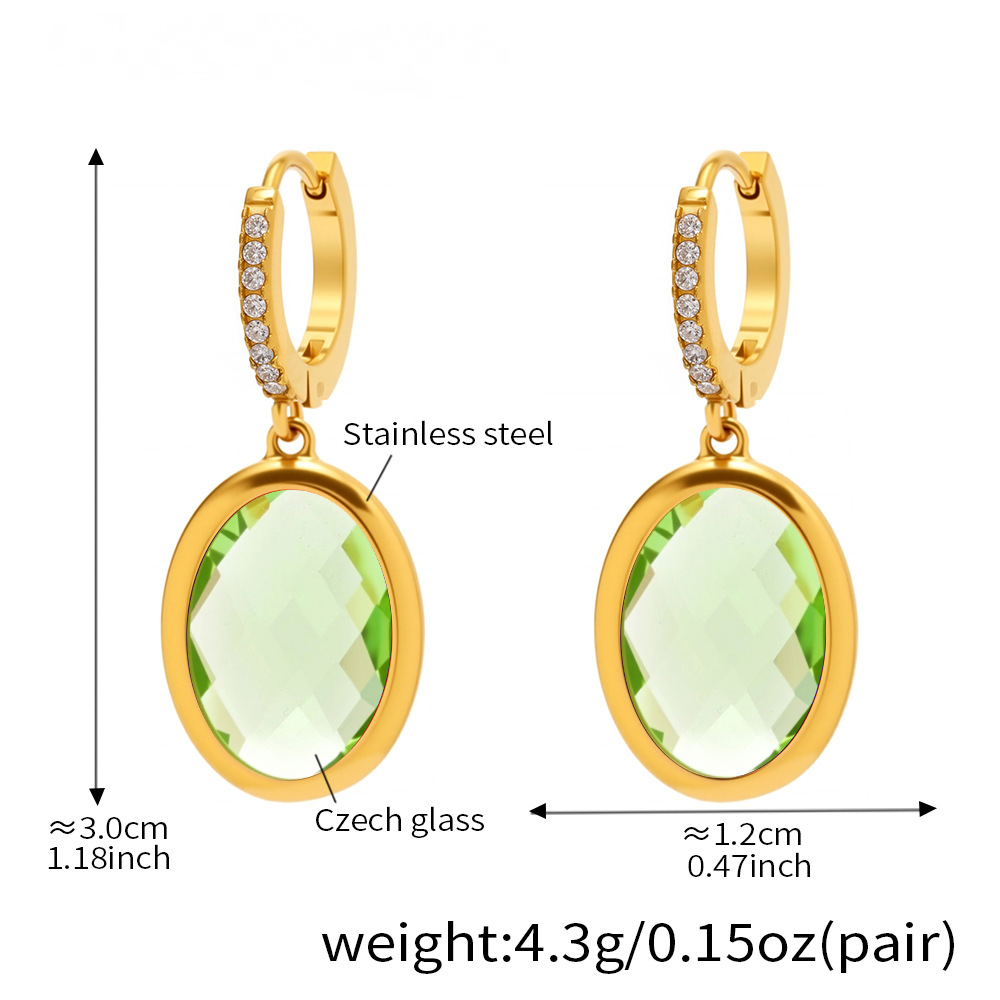 Cut Oval Czech Glass Full Diamond Huggie Earrings