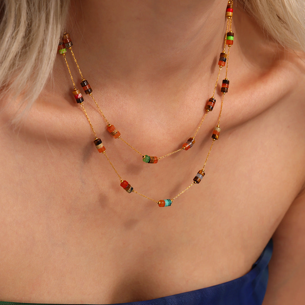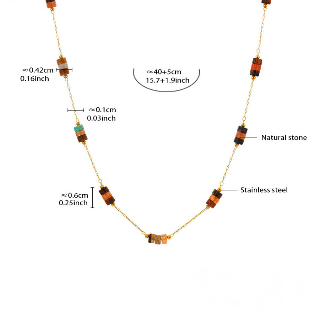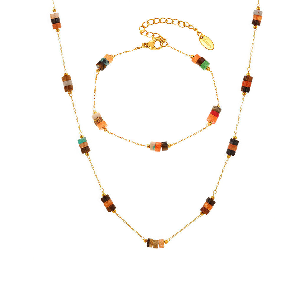 Cylindrical Natural Stone Bracelet Necklace Jewelry Suit