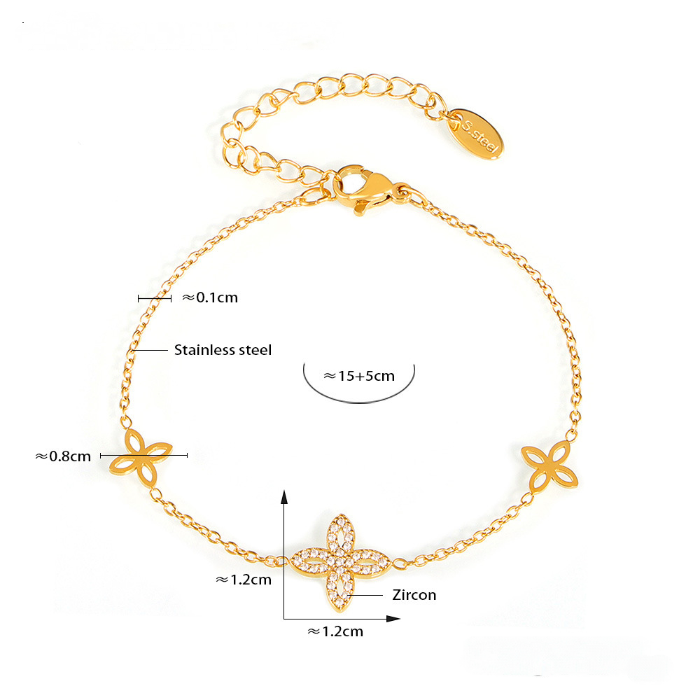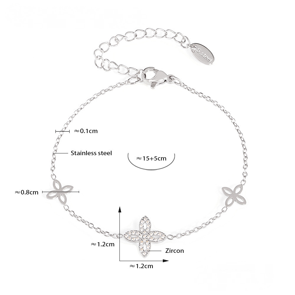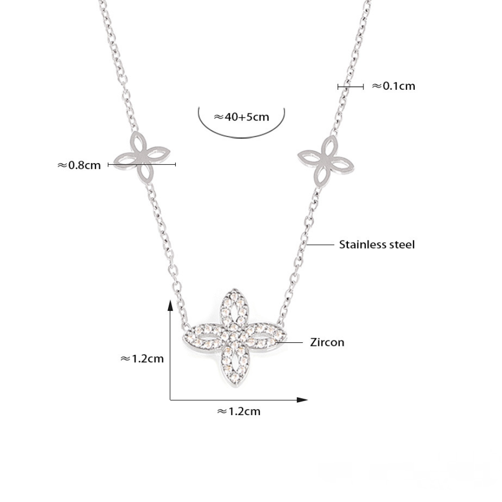 Four-leaf Clover Inlay Cubic Zirconia Stackable Necklace Bracelet Jewelry Suit