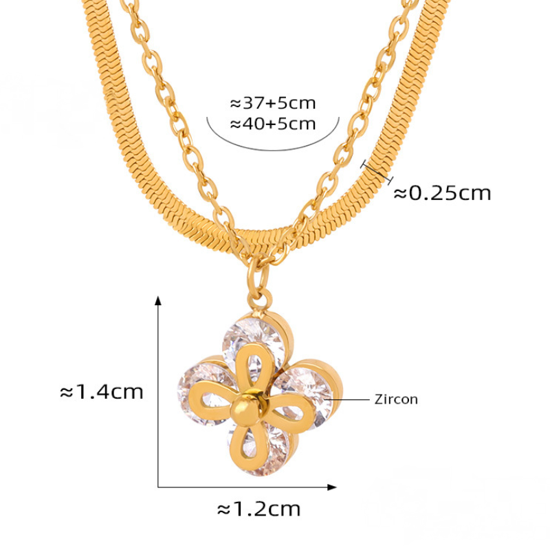Four-leaf Clover Pendant Inlay Cubic Zirconia Stainless Steel Necklace