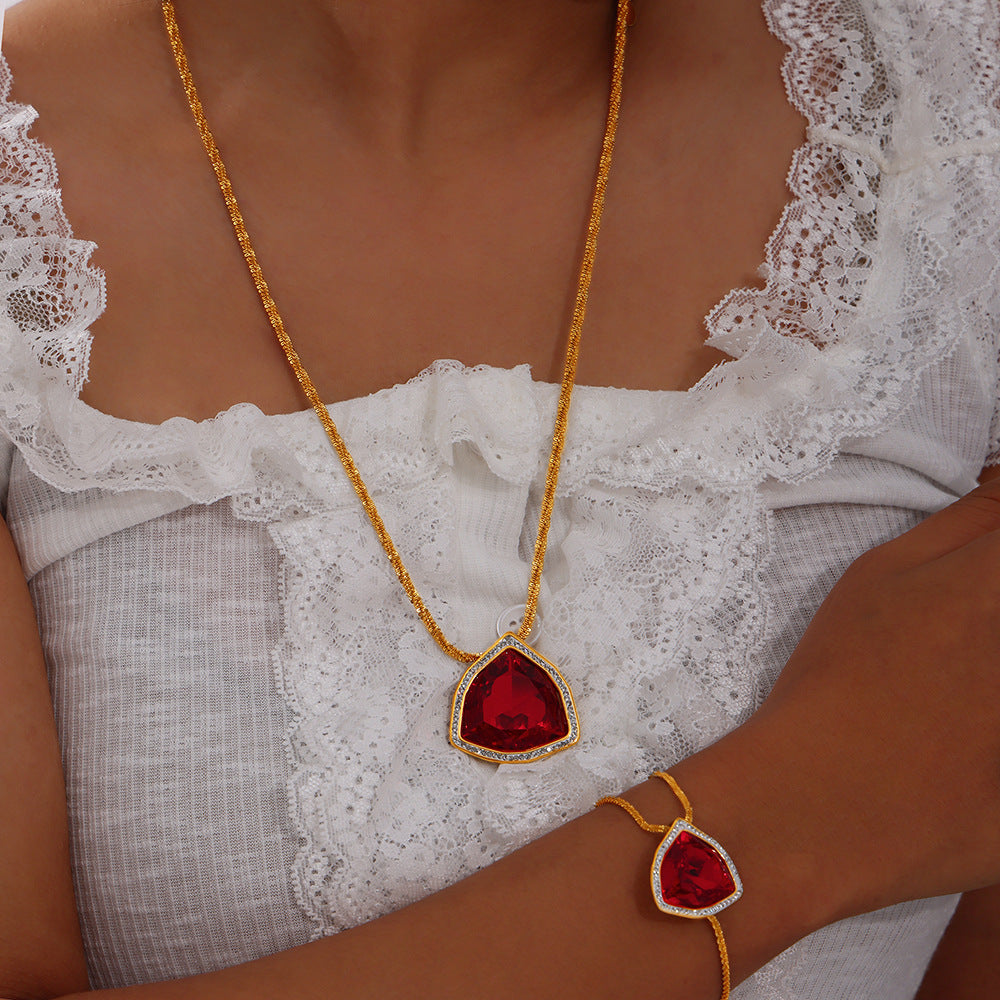 Geometric Pendant Inlay Glass Zirconia Necklace Bracelet Jewelry Suit