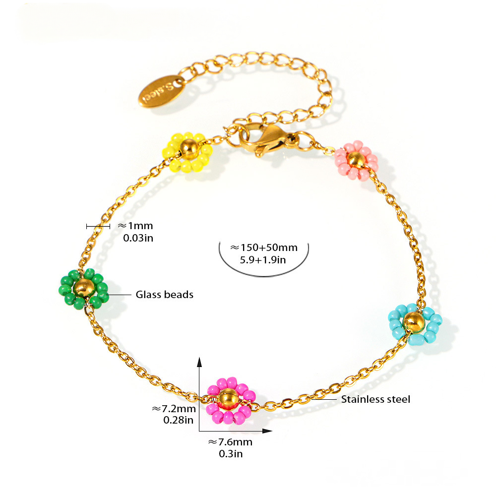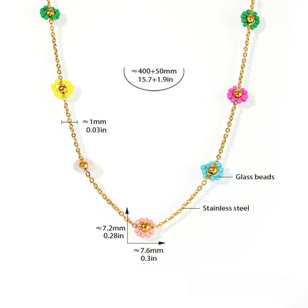 Glass Flower Beads Beaded Necklace Bracelet Jewelry Suit