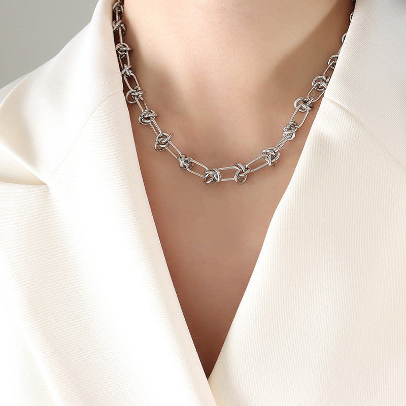 Knotted Chain Stainless Steel Necklace Bracelet Jewelry Suit