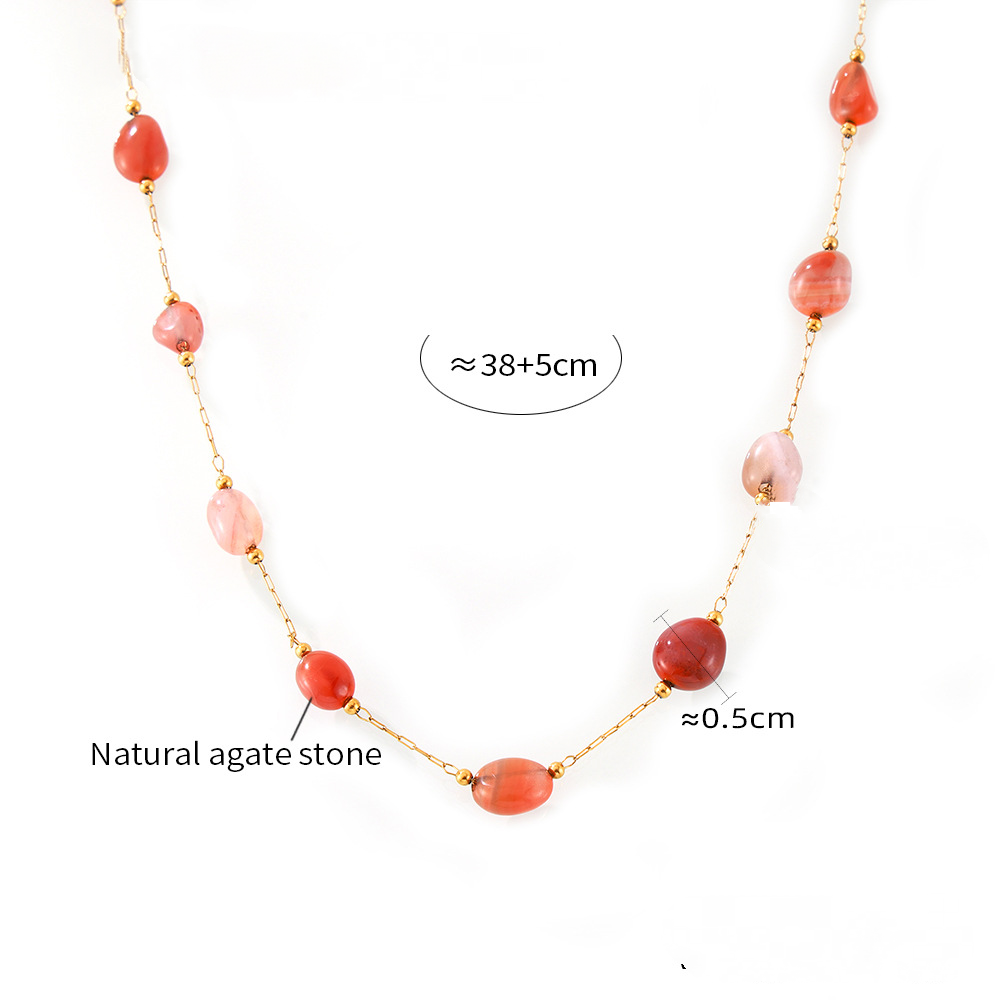Natural Pink Agate Necklace Bracelet Jewelry Suit