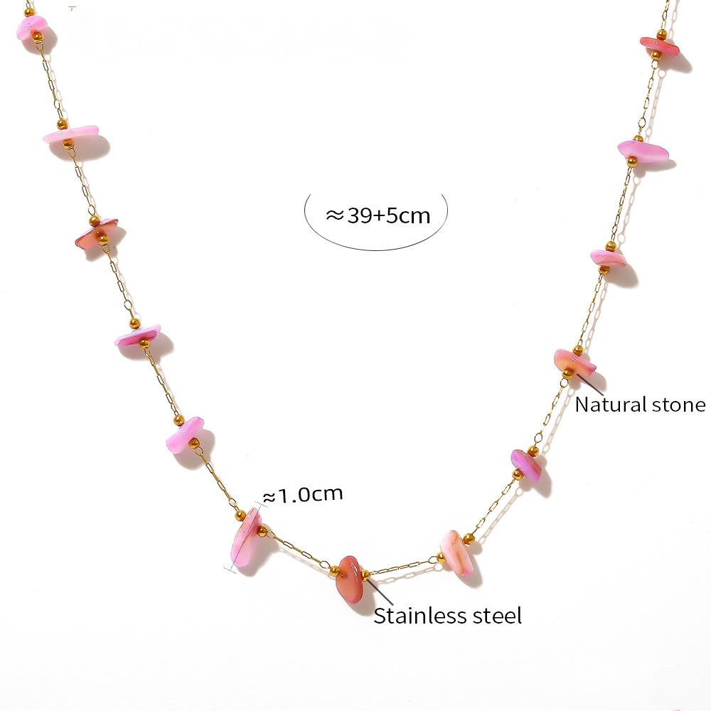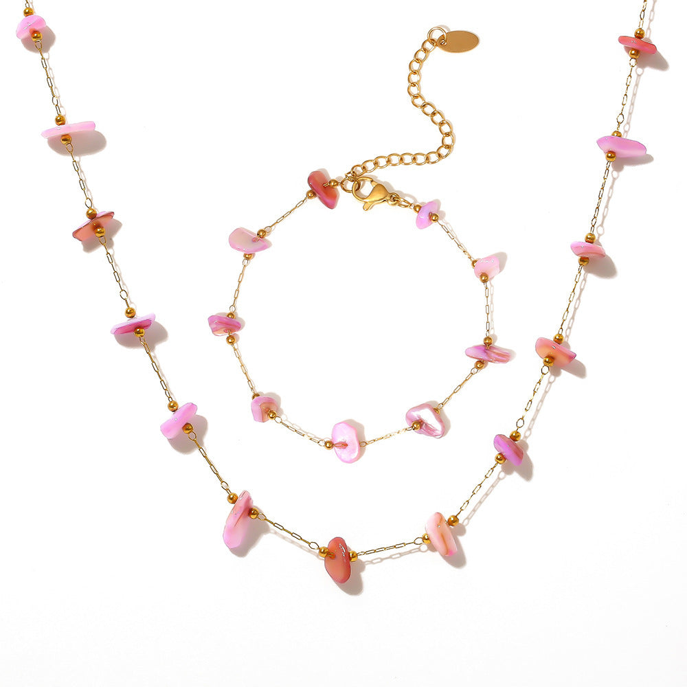 Pink Purple Natural Stone Beaded Necklace Bracelet Jewelry Suit