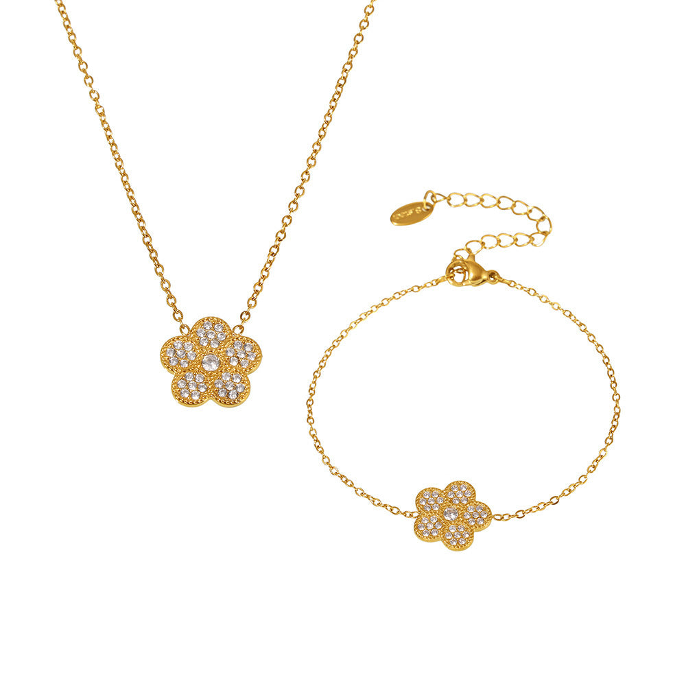 Plum Blossom Inlay Cubic Zirconia Necklace Bracelet Jewelry Suit