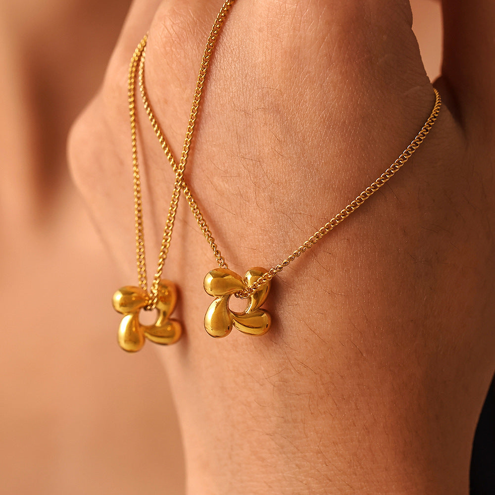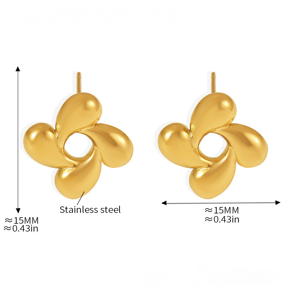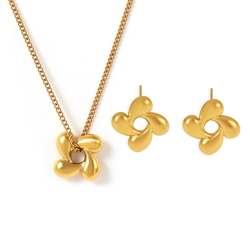 Rotating Flower Stainless Steel Necklace Earrings Jewelry Suit