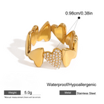 Stainless Steel 18K Gold PVD Cubic Zirconia Heart Ring