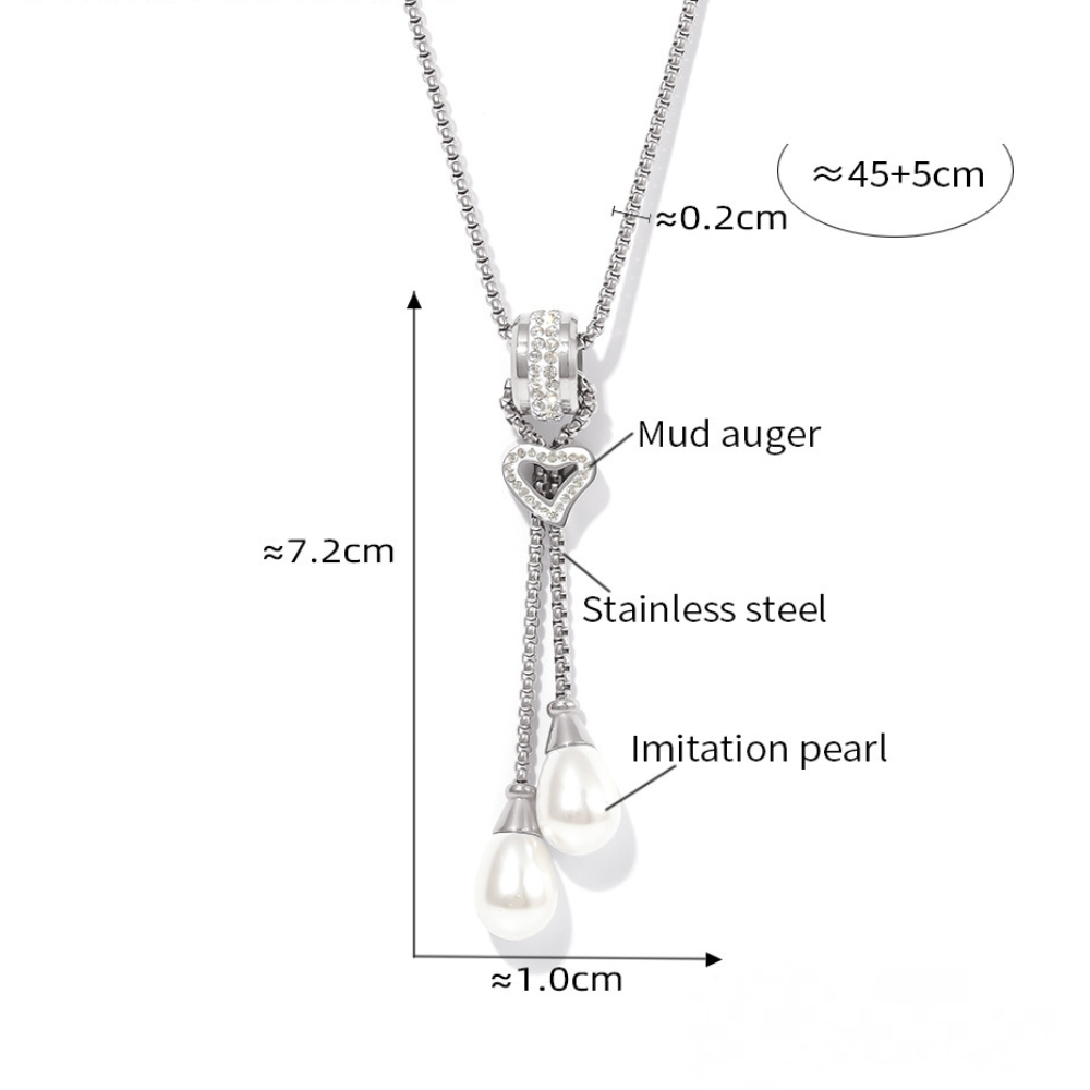 Stainless Steel 18K Gold PVD Heart Tassel Imitation Pearl Pendant Necklace