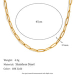 Stainless Steel 18K Gold PVD Paperclip Chain Necklace Bracelet Set