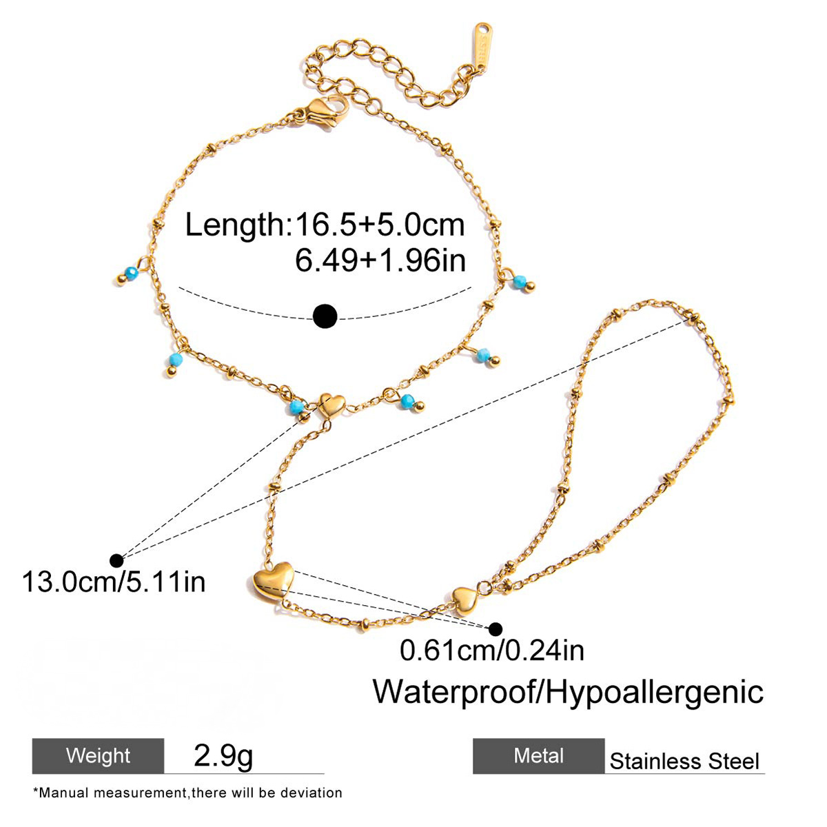 Stainless Steel 18K Gold PVD Turquoise Ring Bracelet Jewelry Set