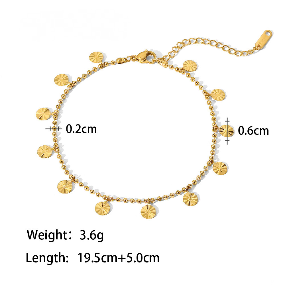 Stainless Steel Bead Chain Petal Disc-shaped Pendant Anklet