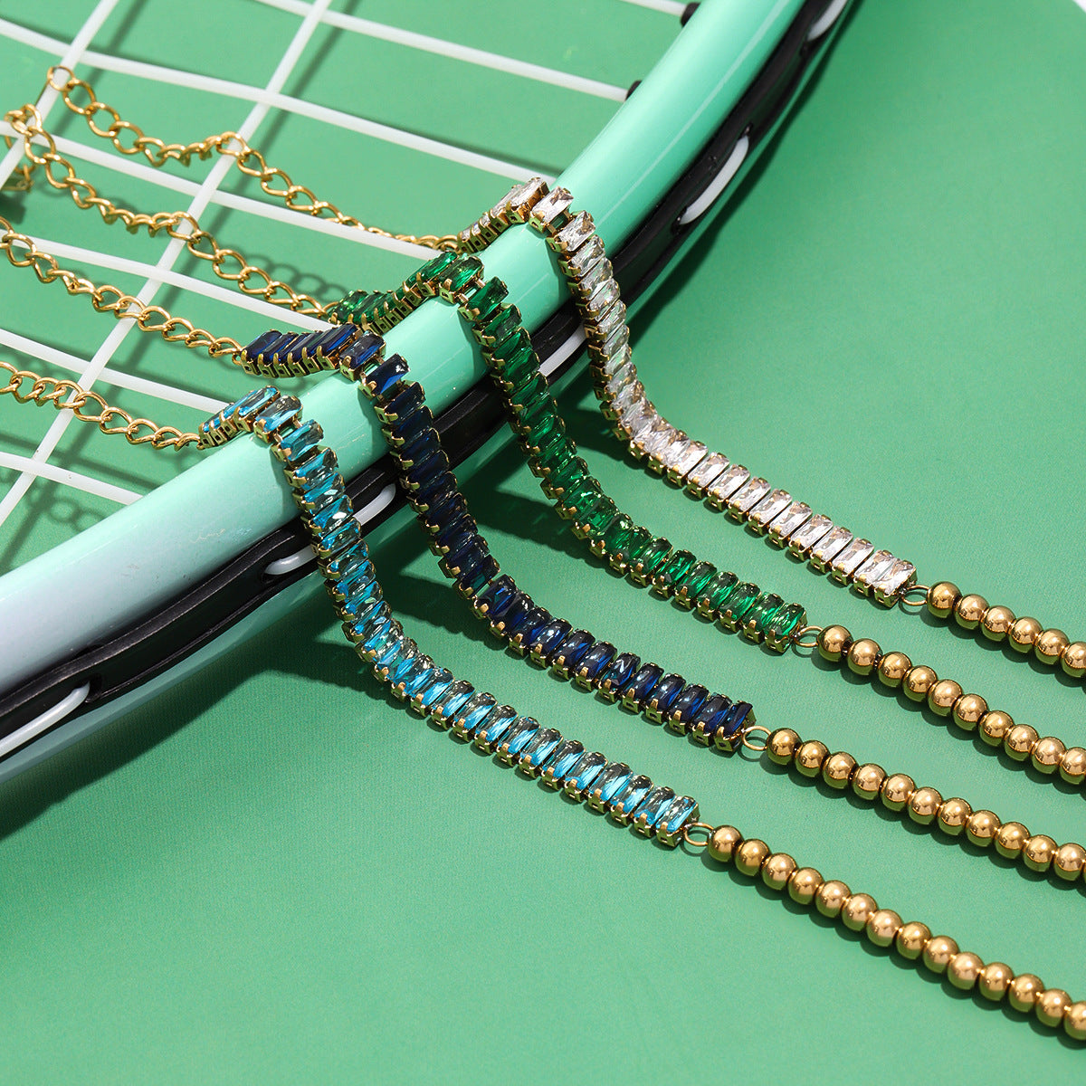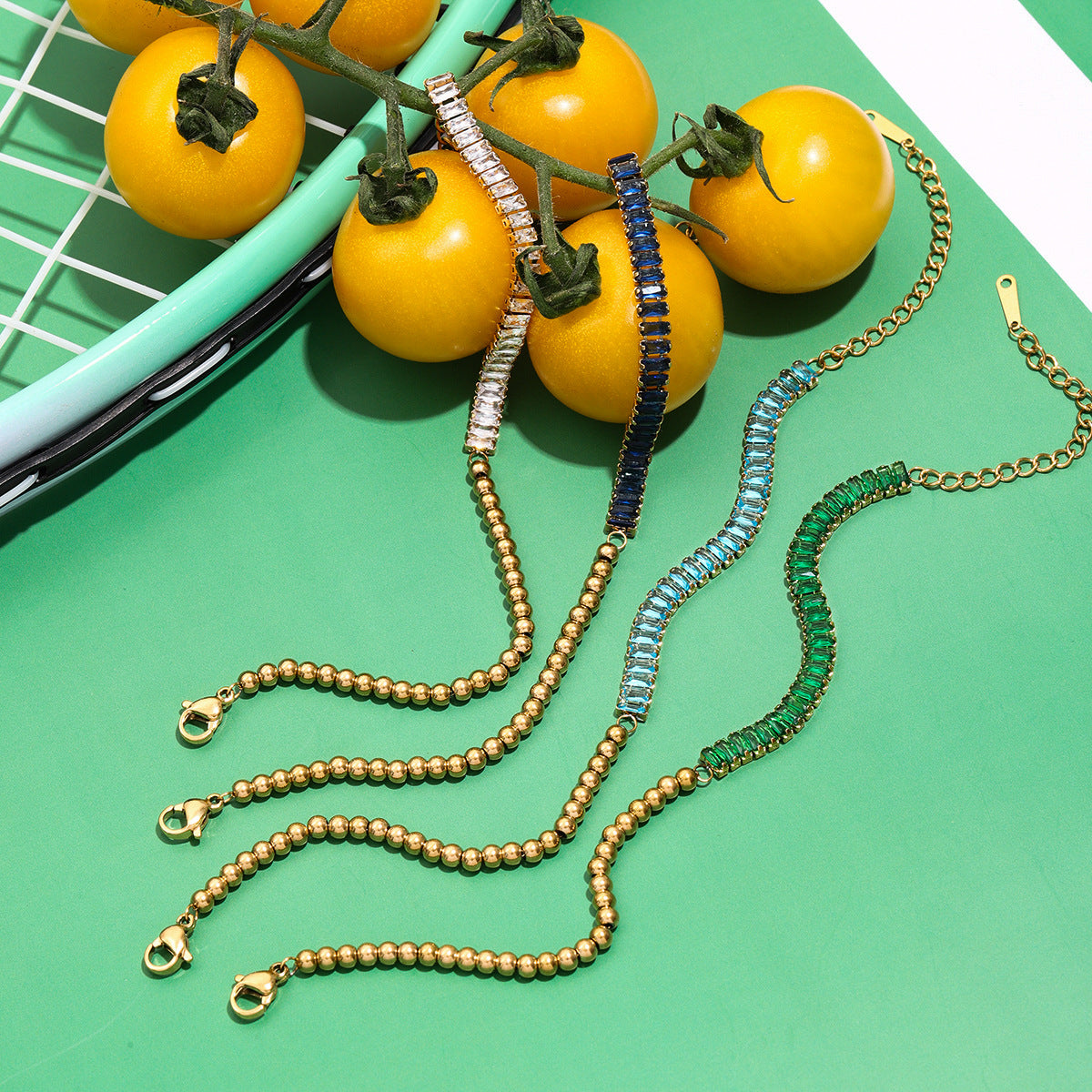 Stainless Steel Cubic Zirconia Bead Splicing Bracelet