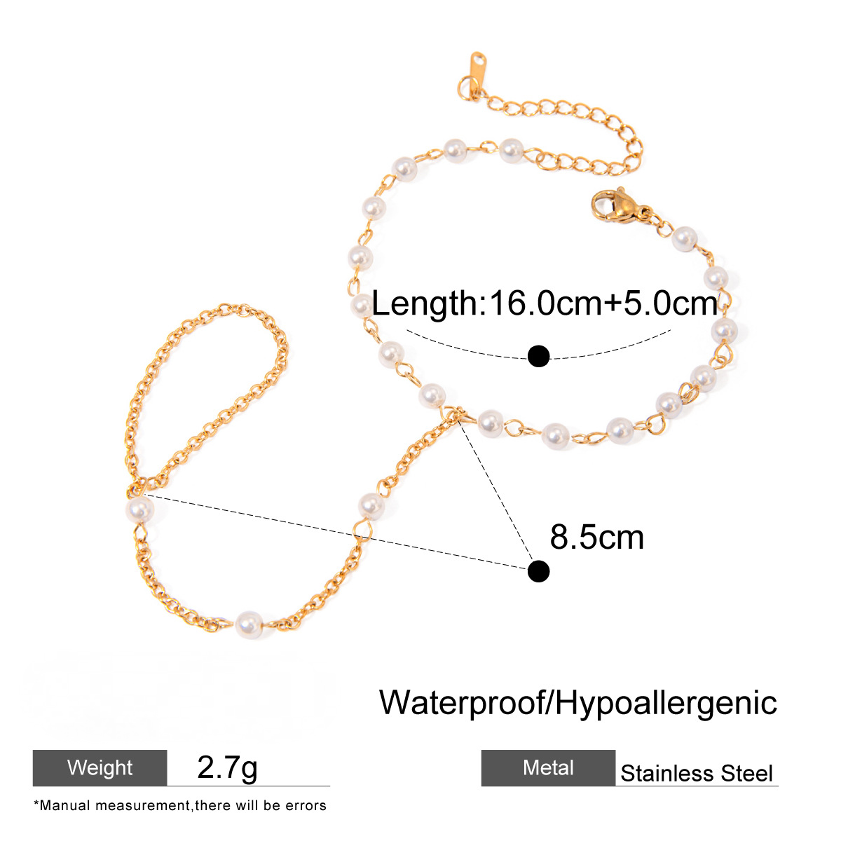Stainless Steel Cubic Zirconia Pearl Finger Bracelet