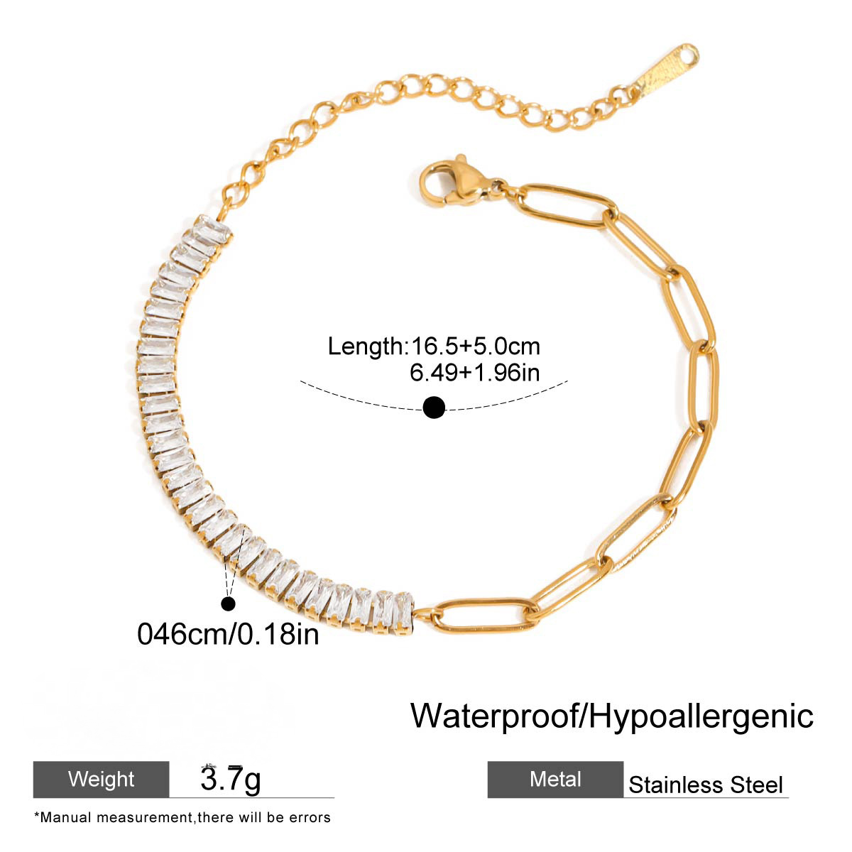 Stainless Steel CZ Paperclip Chain Splicing Bracelet