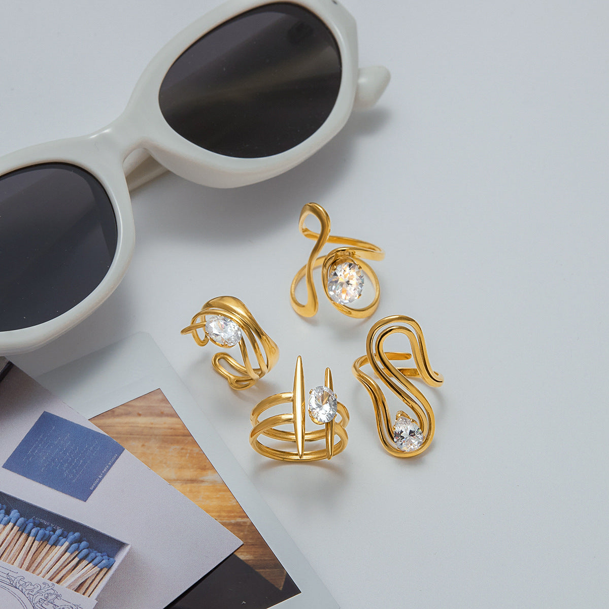 Stainless Steel Design Cubic Zirconia Ring Combination