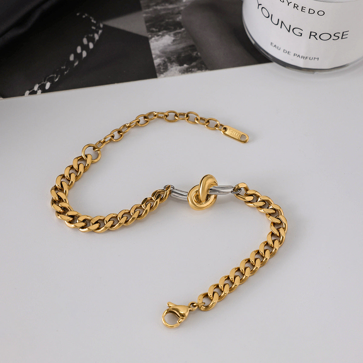 Stainless Steel Knot Gold and Steel Two-Tone Chain Bracelet