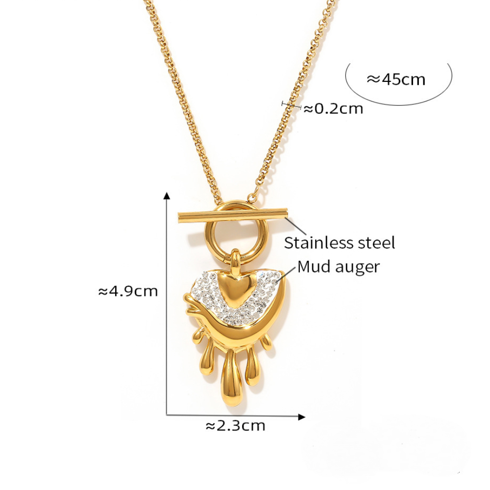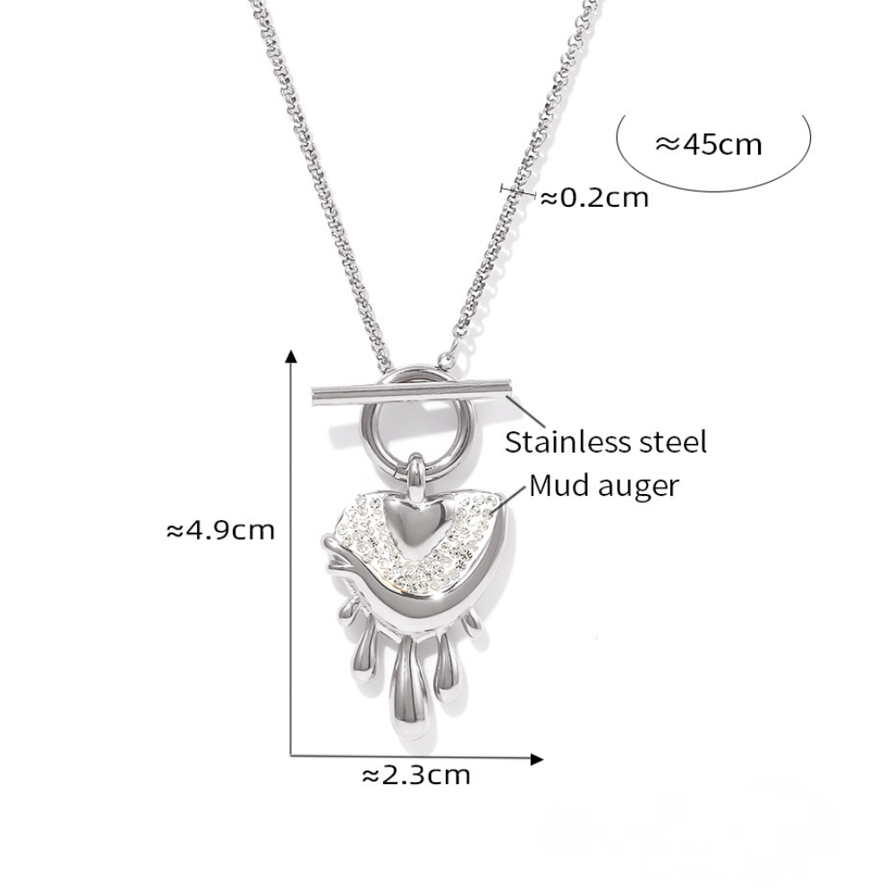 Stainless Steel Melted Heart Inlay Mud Auger OT Buckle Necklace