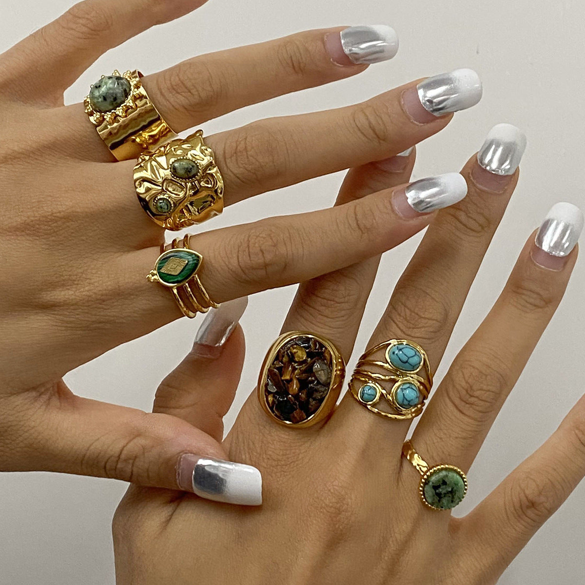Stainless Steel Natural Turquoise Ring