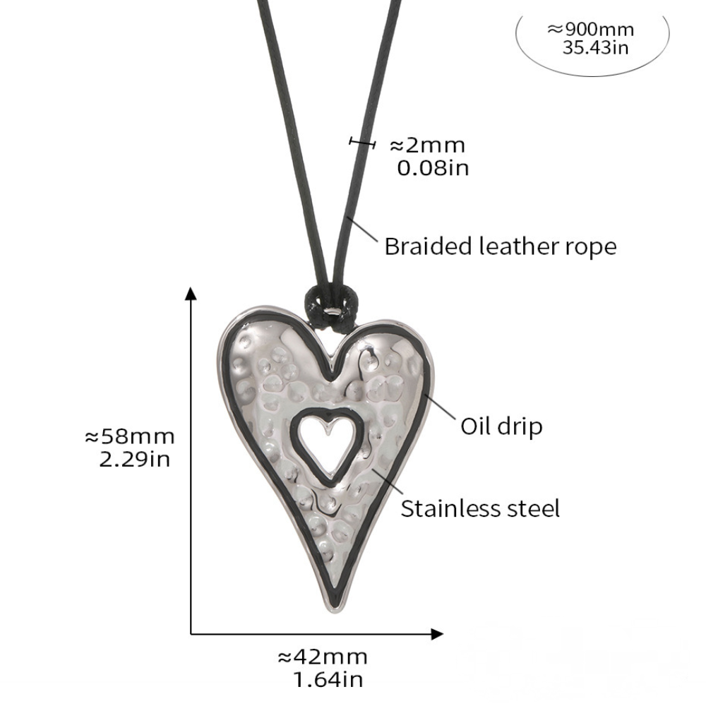 Stainless Steel Oil Drop Heart Earrings Leather Rope Necklace Jewelry Suit