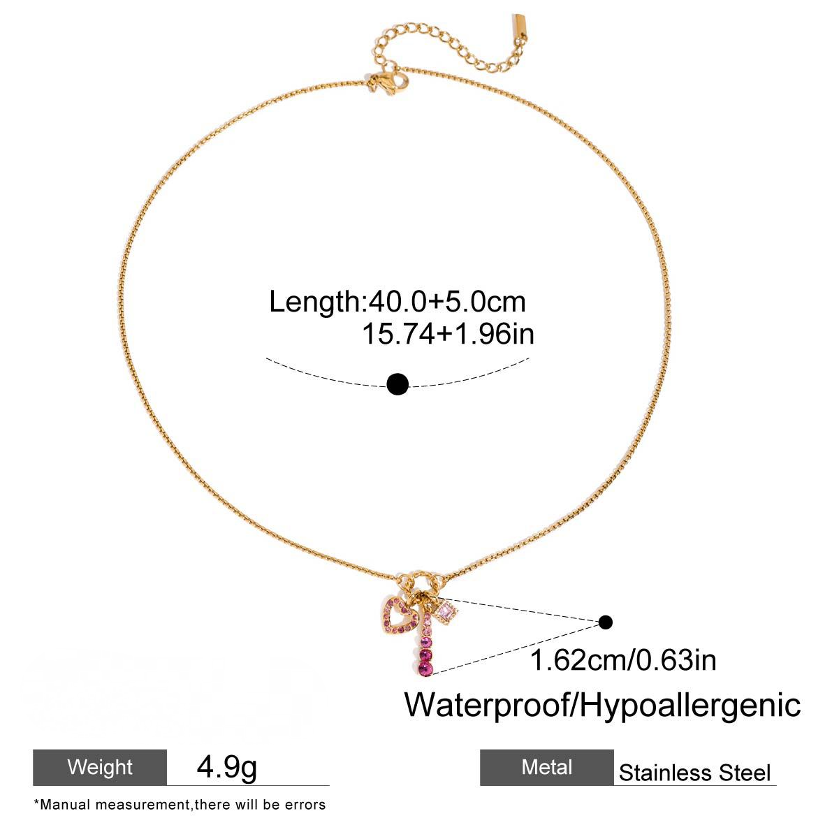 Stainless Steel Pink Cubic Zirconia Heart-shaped Necklace