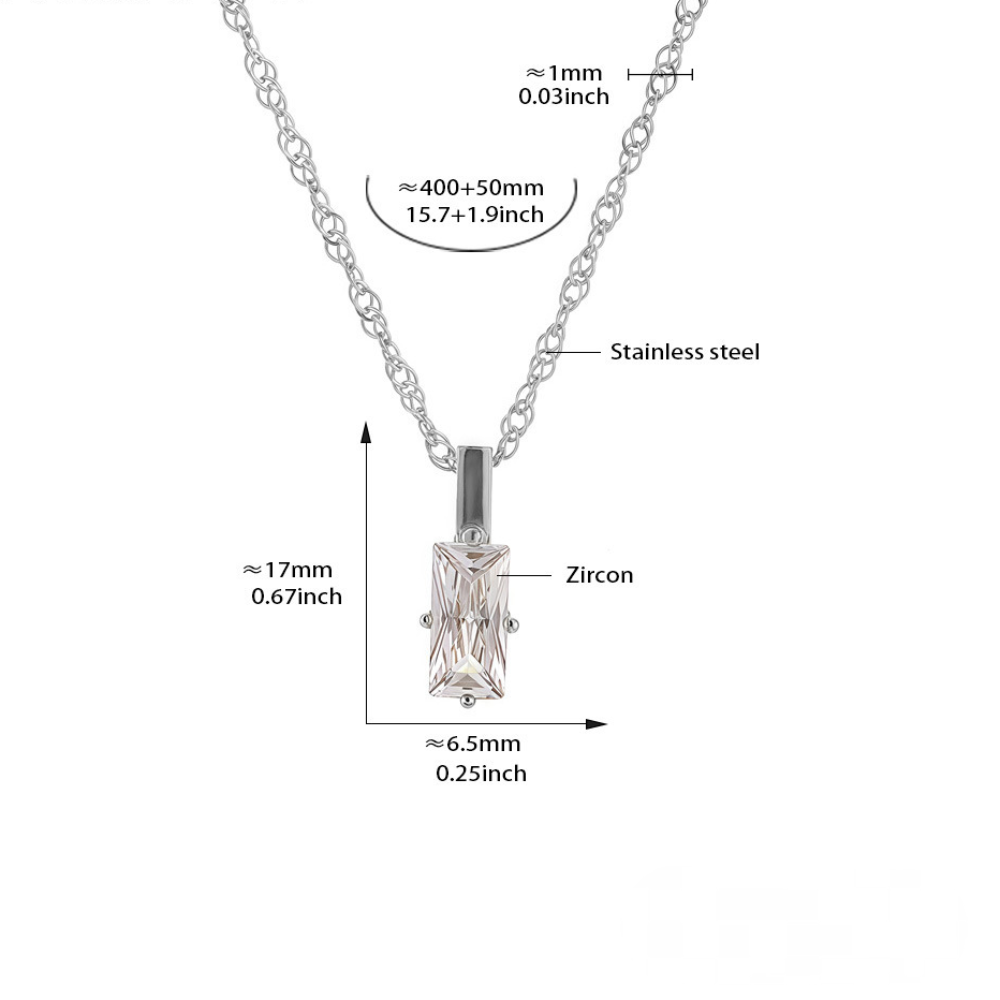 Stainless Steel Rectangular Cubic Zirconia Double Layer Necklace