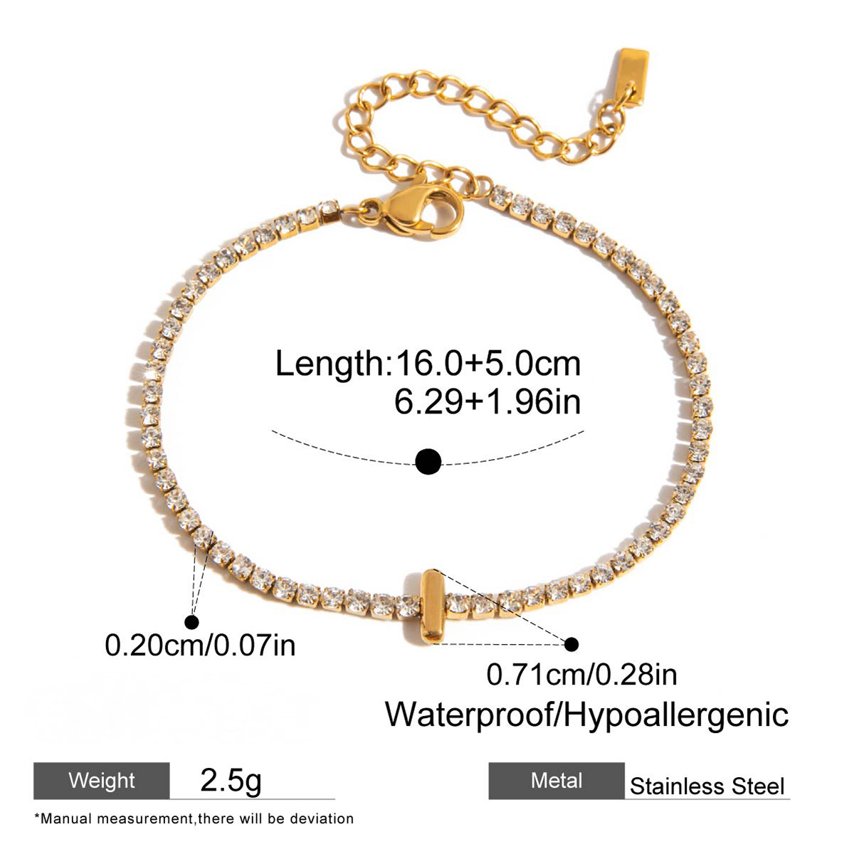Stainless Steel Rhinestone Letter Bracelet