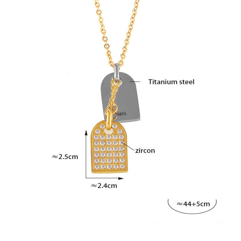 Stainless Steel Square Inlay Cubic Zirconia Pendant Necklace