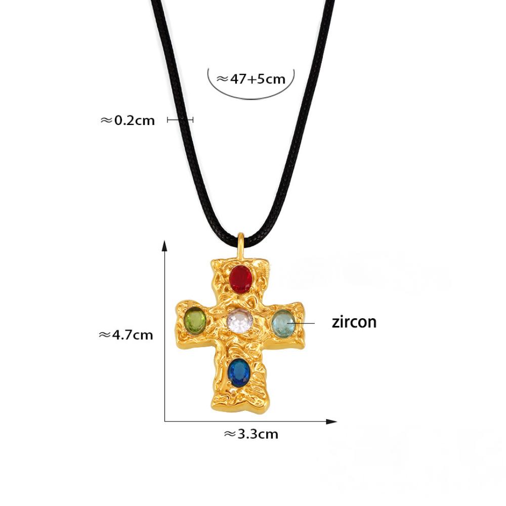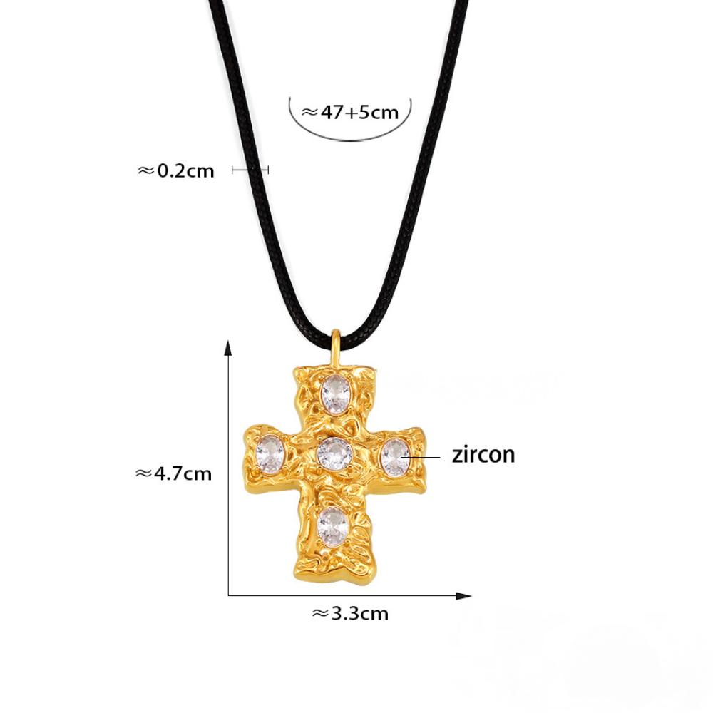 Stainless Steel Texture Cross Cubic Zirconia Necklace