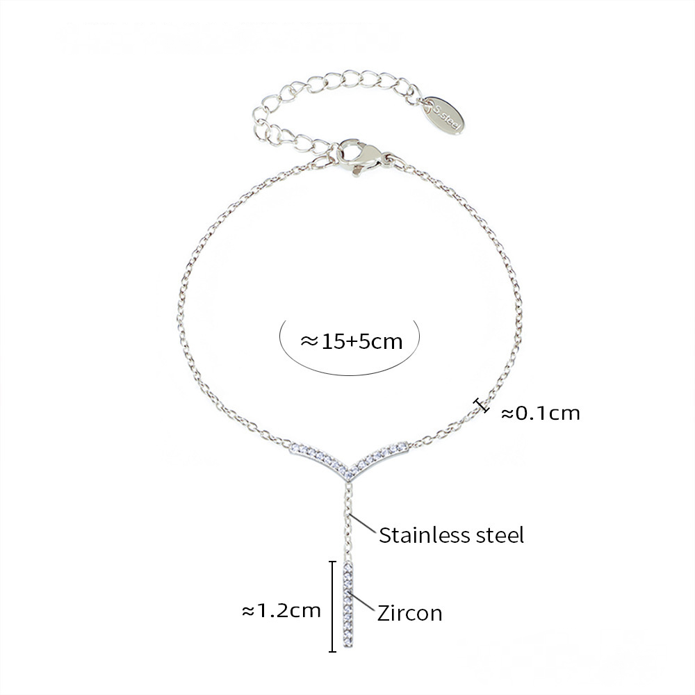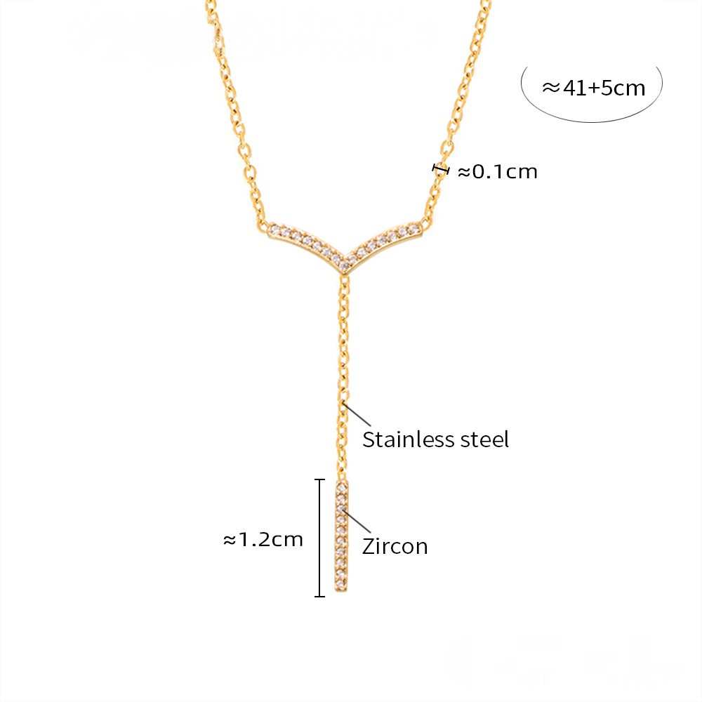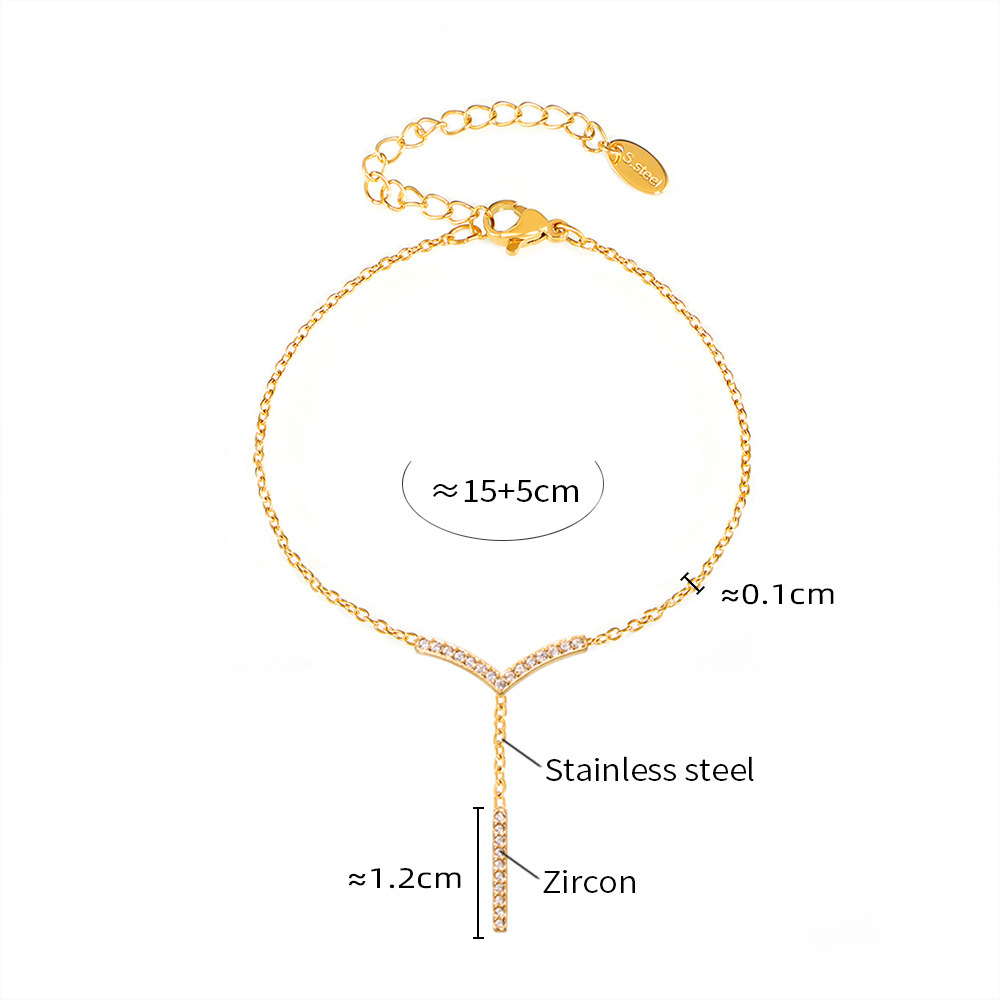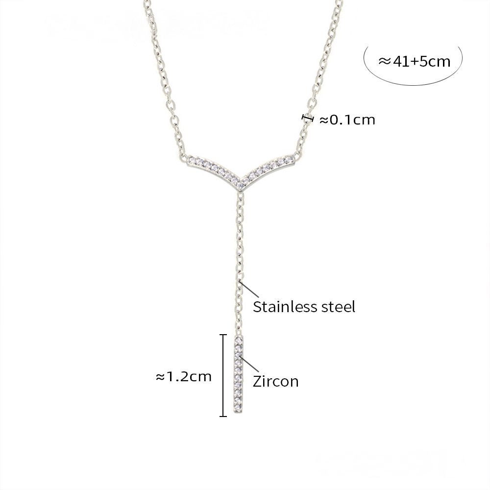 Stainless Steel V-shaped Tassel Inlay Cubic Zirconia Necklace Bracelet