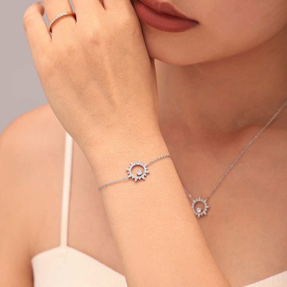 Sunflower Inlay Cubic Zirconia Stackable Necklace Bracelet Jewelry Suit