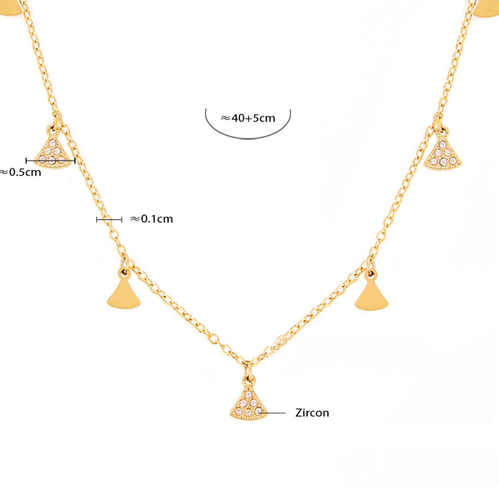 Triangle Inlay Cubic Zirconia Charm Necklace Bracelet Jewelry Suit